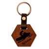 Lasergravert nøkkelring laget av mahogny med solid skinnreim. En fin liten oppmerksomhet å gi til noen du er glad i.