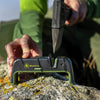 Du kan enkelt velge mellom to ulike slipespor – et bredere spor tilpasset øks og et smalere for kniv. Byttet gjøres raskt og enkelt med bryteren plassert på undersiden av enheten.