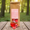 Overrask noen du er glad i med en liten pose omtanke! Hjerteblandingen kombinerer friske bringebærdrops formet som små kjærlighetshilsener med myke, deilige sjokoladehjerter av Fairtrade-sjokolade. En perfekt miks av sødme, kjærlighet og små øyeblikk som varmer – enten du vil si “jeg tenker på deg”, “god bedring” eller bare spre litt hverdagsmagi.